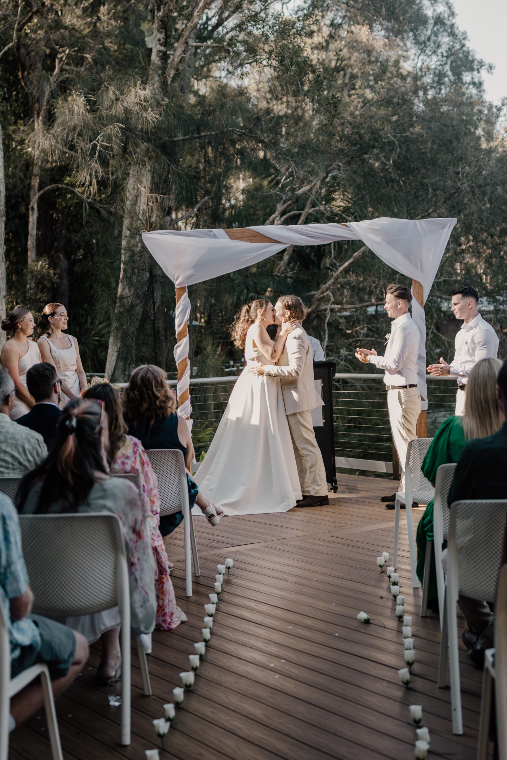 This wedding was the perfect mix of relaxed coastal charm and personal, fun-filled touches. Set against the lush greenery and beautiful garden surroundings that our property is known for, the day felt effortless, warm, and genuinely joyful from start to finish. Guests enjoyed wood fried pizzas straight from Amber at The Oven and later in the evening gelato by the scoop from local Blue Cow Gelato.